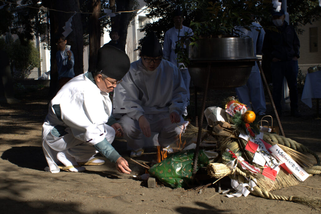 足利市福富町の御厨神社で、大釜でかゆを炊いてその年の農作物の豊凶を占う神事...
