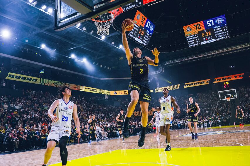 今季、サンダーズは広島をチャンピオンに導いた指揮官、カイル・ミリングヘッドコーチ(HC)や川崎で2021-22シーズンのMVPに輝いた藤井祐眞(PG/SG)、現役ドイツ代表でパリオリンピックでも活躍したヨハネス・ティーマン(PF)、三遠から加入、日本代表にも選出された細川一輝(SG)など、積極的な補強で悲願達成へ向け突き進んできた。今季のサンダーズを語る上で欠かせないのがディフェンス力の進化だ。これは明らかに昨季、広島をチャンピオンに導いたミリングHCの意図が浸透しているのを感じさせる。また、チームの課題だった3点シュートの精度も飛躍的に上昇し補強の意図もズバリ的中。キャプテンの辻直人(PG)を含めた藤井、細川の3ポイントシューター3人が躍動し勝利へと結びつけている。