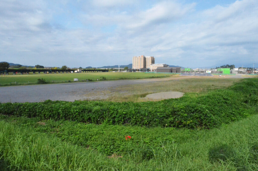 複合化した施設の整備用地は足利赤十字病院に隣接する土地で約7万3000平方㍍。現在は足利スクランブルシティスタジオや芝生広場などとして利用されている。