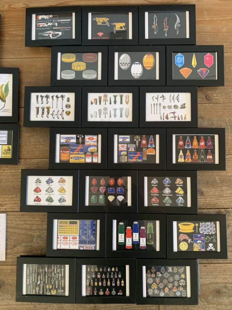 新メンバーの一人は中学1年生の孝汰さん、4歳のときお絵かきボードで描いた恐竜などが初めての作品。最近では幾何学模様や風景にも挑戦している。作品「海」で、2025パラアート TOKYO 第12回国際交流展 入選している。もう一人は、裏天貢(りてんこう)さん(24歳)、ゲーム機のニンテンドー3DSの機能を使い、ゲームのアイテムや昔のお酒やジュースの瓶をドット絵で表現している。