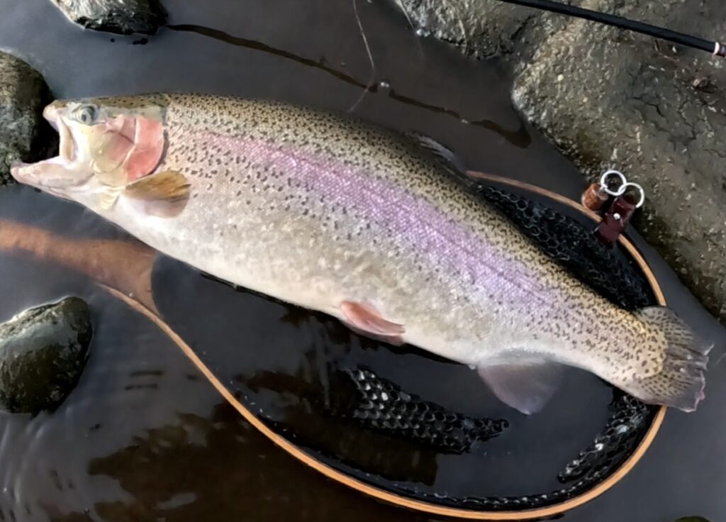 渡良瀬川の冬季釣り場では大型のニジマスを多く放流しており、50cmを余裕で超える大物も放流されています。