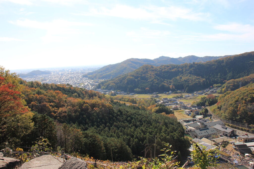 葡萄畑のある山の頂上から見た足利市内の眺望