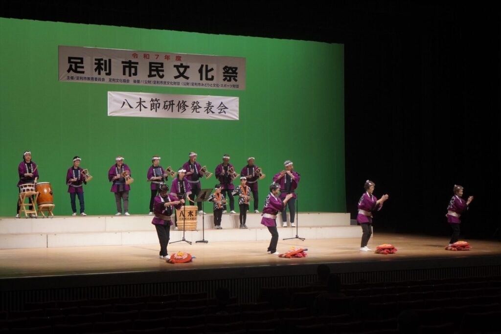 2025年度足利市民文化祭・八木節研修発表会が11月16日、同市朝倉町の足利市民プラザ(あしかがフラワーパークプラザ)で開かれた。