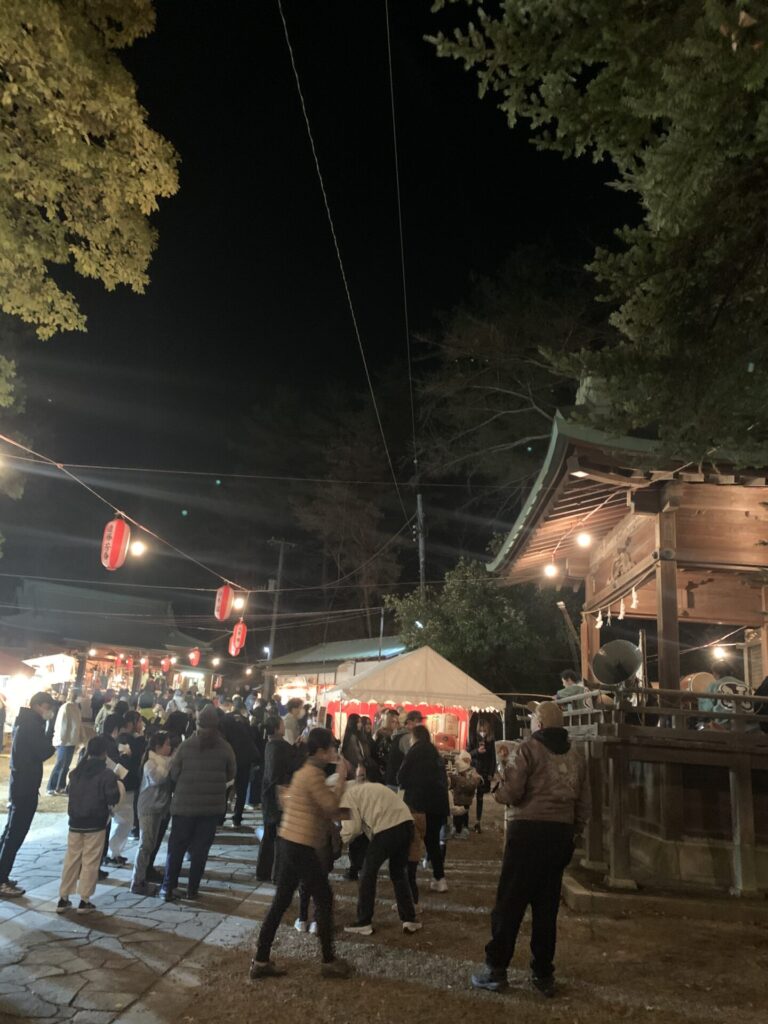 参道には熊手などの縁起物をはじめ、さまざまな露店が軒を連ね、客引きの声が賑やかに響く。買い求める縁起物が決まった客には、店主らが「商売繁盛」「家内安全」の掛け声と拍子木の音と共に勢いよく手締めが行われ、祭気分が盛り上がる。