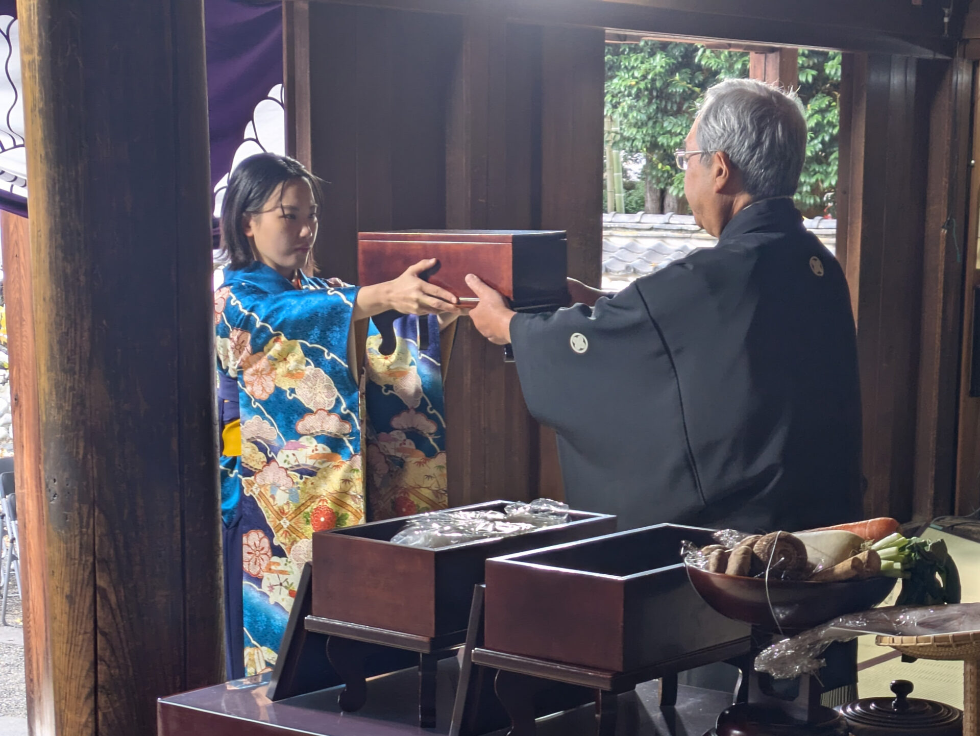 一方、同保存委では数年前から「後世に引き継いでいくためにも若い人の参加が必要」と検討が行われてきた。初回からのこども釋奠経験者から社会人が誕生した今年を「よい機会」ととらえ、打診。2人が参加を希望し、振袖姿の祭官が誕生した。