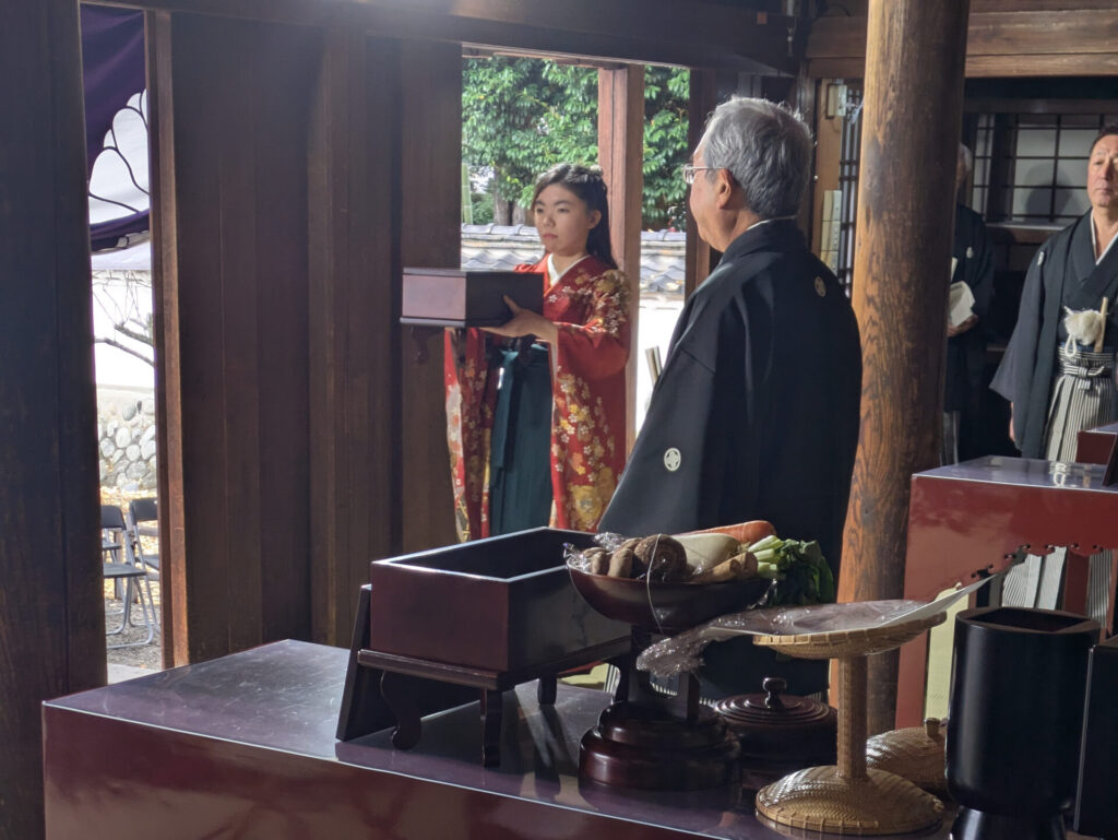 足利市昌平町の史跡足利学校で11月23日、伝統行事「釋奠(せきてん)」が執り行われた。今回はこども釋奠を経験した20代の女性が振袖姿で祭官を務め、伝統行事が次世代へと受け継がれていく光景を見せた。