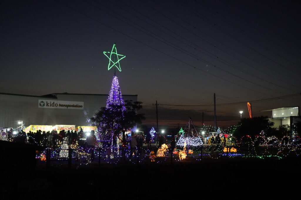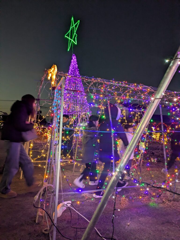 NPO法人あがた農楽園(石川隆道理事長)が主催する第5回あがたスマイルイルミネーションが東武鉄道県駅南側の公園を会場に始まった。今年は高さ7・5㍍のツリーや光のトンネルをくぐれるイルミネーションが初登場。12月13日には点灯セレモニーが行われ、多くの人が会場に足を運び手作りのイベントを楽しんだ。