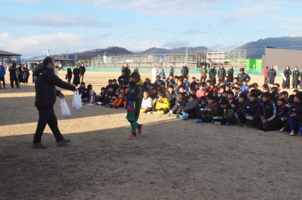 試合はもちろんだが、同大会で子どもたちが楽しみにしているのが抽選会。事前に配布された抽選札を握り、番号が読み上げられるたびに歓声を上げていた。商品は足利産のイチゴやトマト、うどん、菓子類の詰め合わせ、試合で使用したサッカーボールもあり、賞品を手にした子どもたちは大喜びだった。