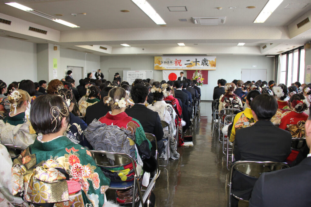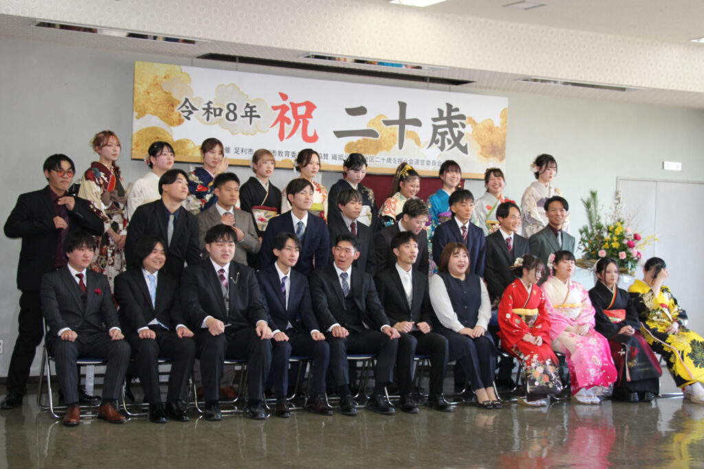 1月11日、足利市と足利市教育委員会主催の「足利市二十歳を祝う会」が市内9会場で行われた。全対象者1,314人、会場の1つ織姫公民館では128人が出席。第一中学校と第二中学校の卒業生が集い、恩師や同級生等と懐かしい姿を確認していた。