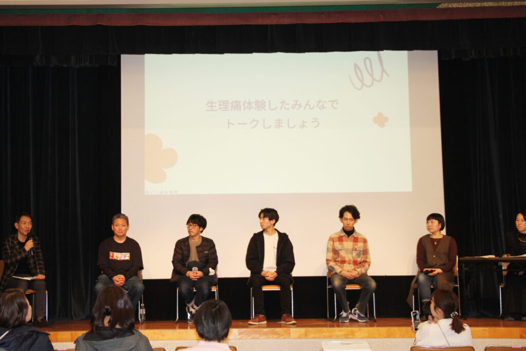 トークライブの一つ「知ると変わる月経のこと、体のこと」では、粕川まりえさん(助産師・保育師)と浦山まなさん(保健師)が進行役となり、生理痛体験者の内の5人の男性とともにトークセッションを行った。進行役の2人が、生理(月経)についてのメカニズムや、期間中の女性の体調がいかに不調であるか説明した後、男性5人から体験の感想を聞いた。「一次的ではなく、周期的に長時間続く痛みを想像すると実に大変なことだと思った」「想像以上に強い痛みだった」など驚きの言葉が多く聞かれた。さらに今後、女性に対してどのような配慮かできるかとの質問には「女性が辛さを言葉にできる職場にした」「娘がいるので、その娘に相談してもらえるパパになりたい」など生理中の女性を思いやる言葉が語られた。体験者の1人として参加した同市の早川尚秀市長は「女性が生理について普通に言い出せる環境、それを受けとめることのできる社会をつくり、1人の女性として尊重される社会・まちづくりを目指したい。」と語っていた。