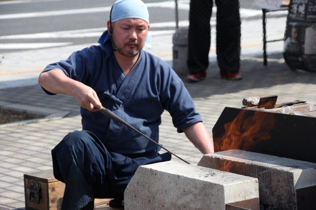刀工による鍛練の後行われた、相槌体験の参加者に感想を聞くと「この公開鍛練の開催をSNSで知り、仙台から親子でやってきました。実際の槌はずっしりと重くて驚きました。打った瞬間、鋼が柔らかく広がる感覚が伝わってきました。」と興奮気味に語っていた。