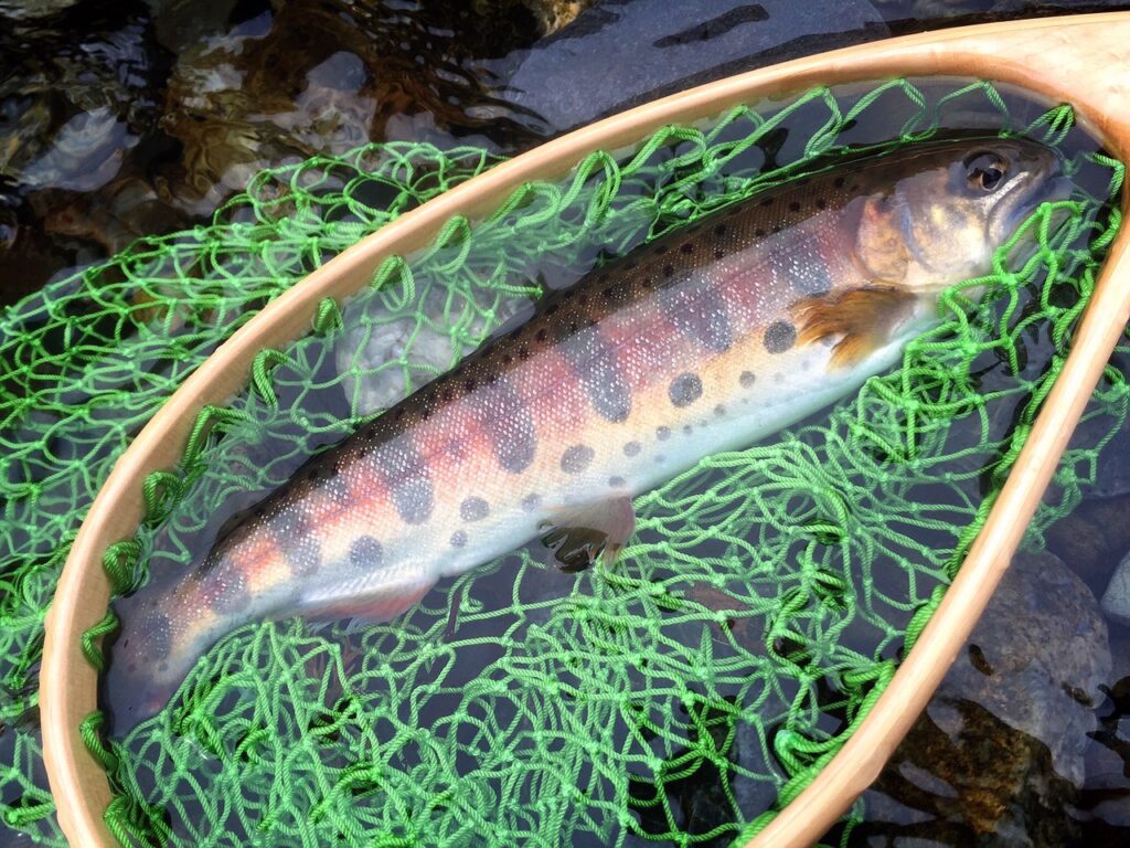 渓流魚の代表的な魚といえばイワナとヤマメ。特にヤマメは身体にパーマークと呼ばれる特徴的な青い模様が入っており、その鮮やかな魚体につい見入ってしまいます。