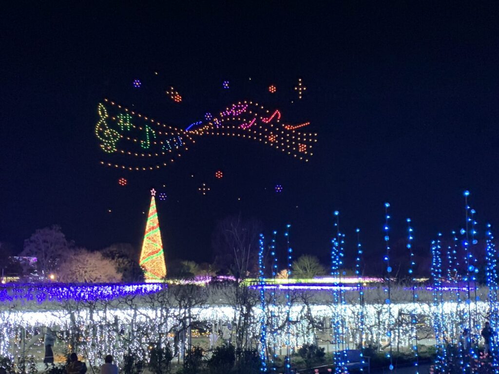 あしかがフラワーパーク イルミネーションからのFlower Fantasy ドローンショー 夜空に響く歓声!