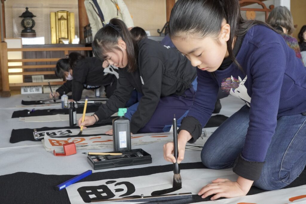 小・中学生が気持ちを込めて筆運ぶ・恒例の新春書き初め会・足利学校